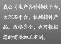 全意鑄鐵平臺平板廠家專注生產(chǎn)T型槽鑄鐵平臺,大理石氣浮實驗石平臺,han接鑄鐵平臺,裝配鑄鐵平臺,檢測測量大理石平臺,試驗鑄鐵平臺,測量大理石平板,T型槽平臺,電機試驗平臺,三坐標測量平臺等鑄鐵平板來圖加工定做業(yè)務,以合理的價格,專注的技術(shù)服務于國內(nèi)外客戶,互利合作,共同發(fā)展!公司位于河北交河開發(fā)區(qū),京滬鐵路、104國道、106國道、京福高速公路橫穿而過,與我國的兩大直轄市北京、天津近在咫尺,地理位置優(yōu)越,交通非常便利。我公司本著以誠納客”“嚴把質(zhì)量關(guān)”“價格優(yōu)惠”“用戶至上的原則,幾十年兢兢業(yè)業(yè),受到用戶的一致好評!